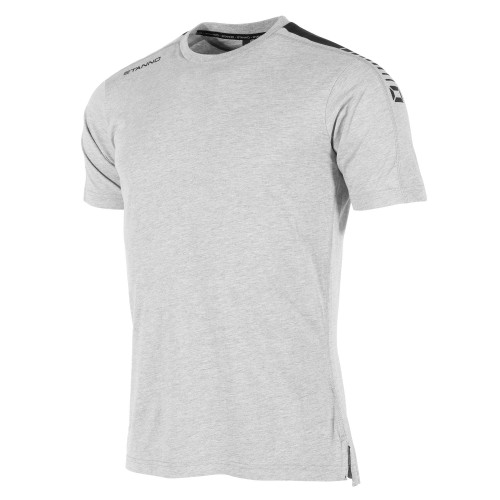 This mix of materials makes the shirt suitable for both sports and casual use. The shirt has a graphic Stanno print on the shoulders. The round neck is made of elastic rib material.