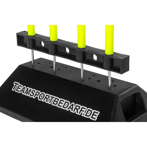 You will receive a handy base stand for your free kick dummy - the ideal accessories to be used on hard, artificial grass courts and in the sport hall. The stand is suitable for our free kick and training dummies, as well as for slalom and hurdle poles. Simply insert the dummy and through the weight (approx. 10 kg) of the rubber base stand, the base stands very stable on the floor. The price refers to one high-quality base stand for a free kick dummy. Dummies and poles are not included in the price. Professional sports teams are already training with our products!